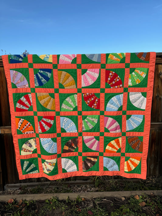 Custom Quilt Jacket - Coral and Green Fans