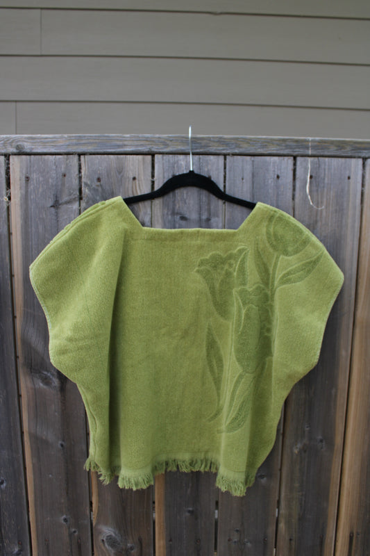 Vintage Towel Blouse (XXL) - Green Velvet Tulips
