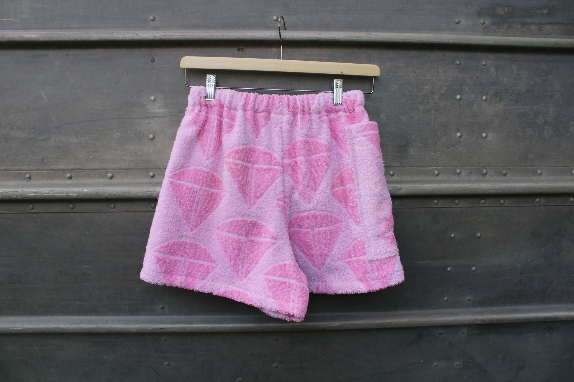 Shorts made from a vintage towel (cotton). Mid rise and perfect for a beach or swimsuit coverup - or just to wear everyday.