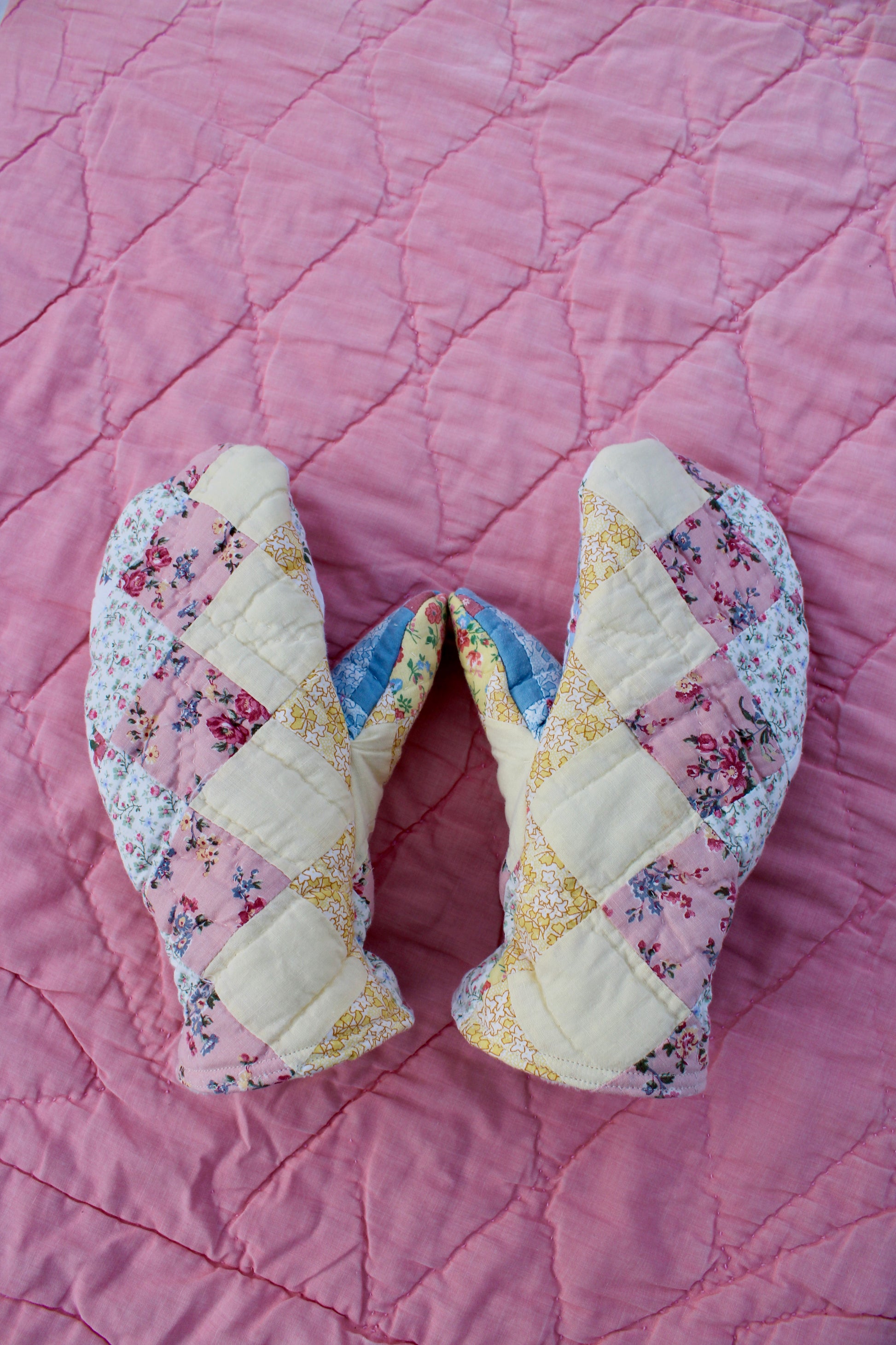 Please note: due to the nature of vintage and preloved quilts, there may be imperfections and wear such as light staining, small holes or other minor imperfections. Mittens are final sale.