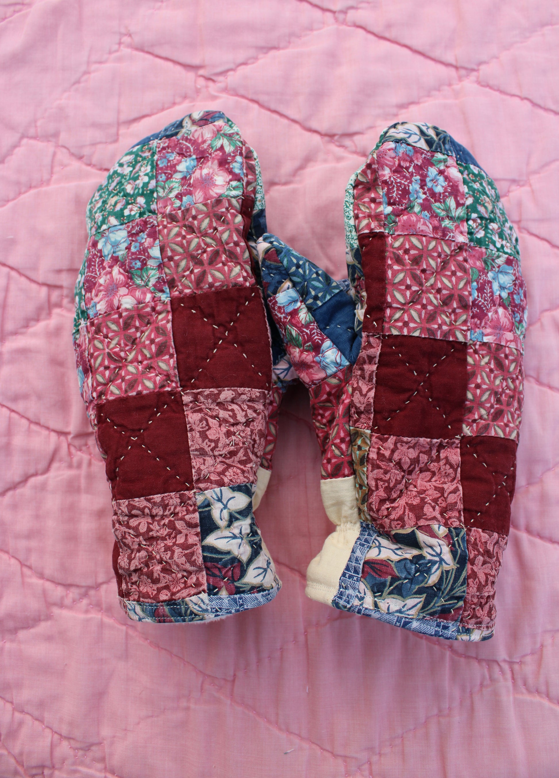 Handmade mittens made from secondhand quilt and super soft chenille lining.