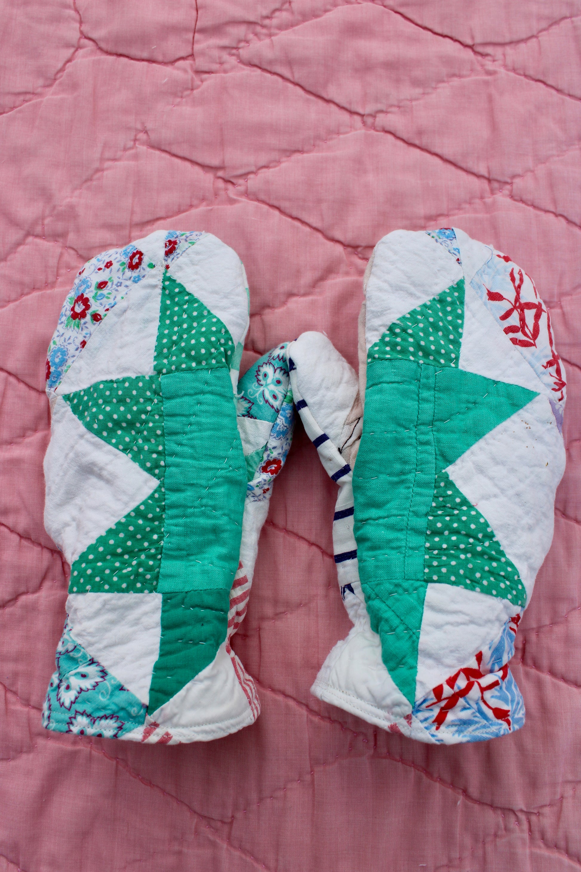Please note: due to the nature of vintage and preloved quilts, there may be imperfections and wear such as light staining, small holes or other minor imperfections. Mittens are final sale.