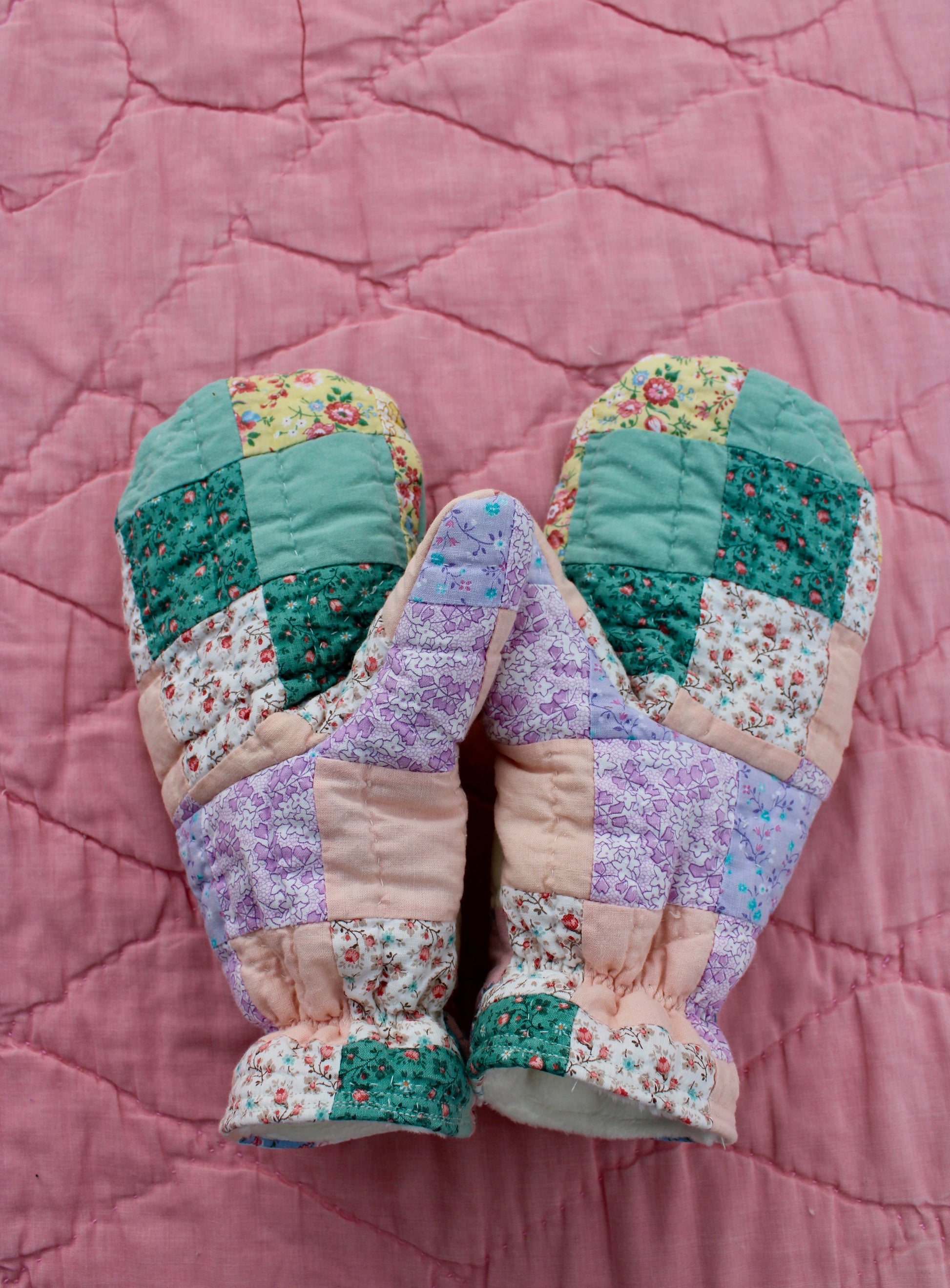 Please note: due to the nature of vintage and preloved quilts, there may be imperfections and wear such as light staining, small holes or other minor imperfections. Mittens are final sale.