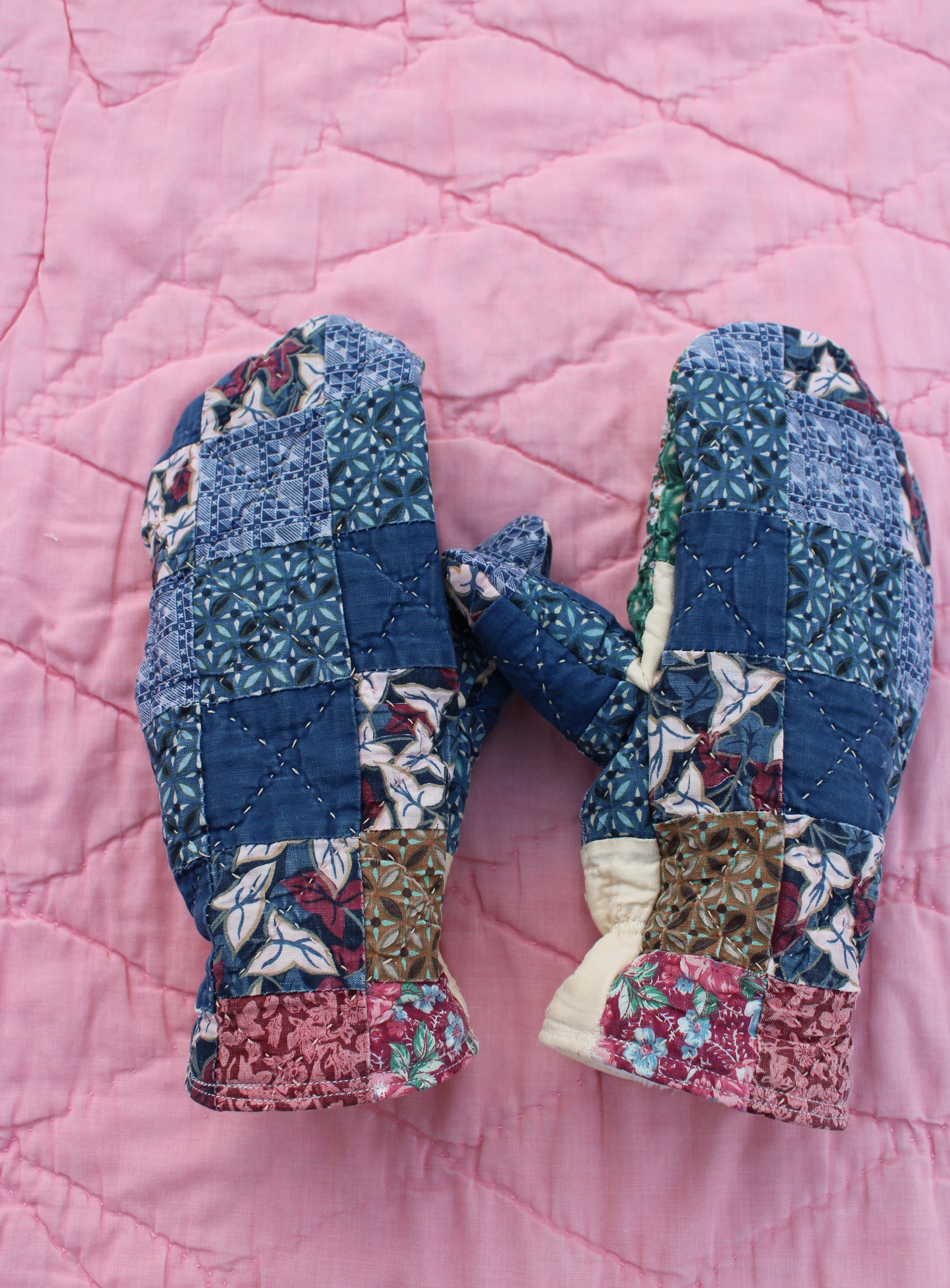 Please note: due to the nature of vintage and preloved quilts, there may be imperfections and wear such as light staining, small holes or other minor imperfections. Mittens are final sale.