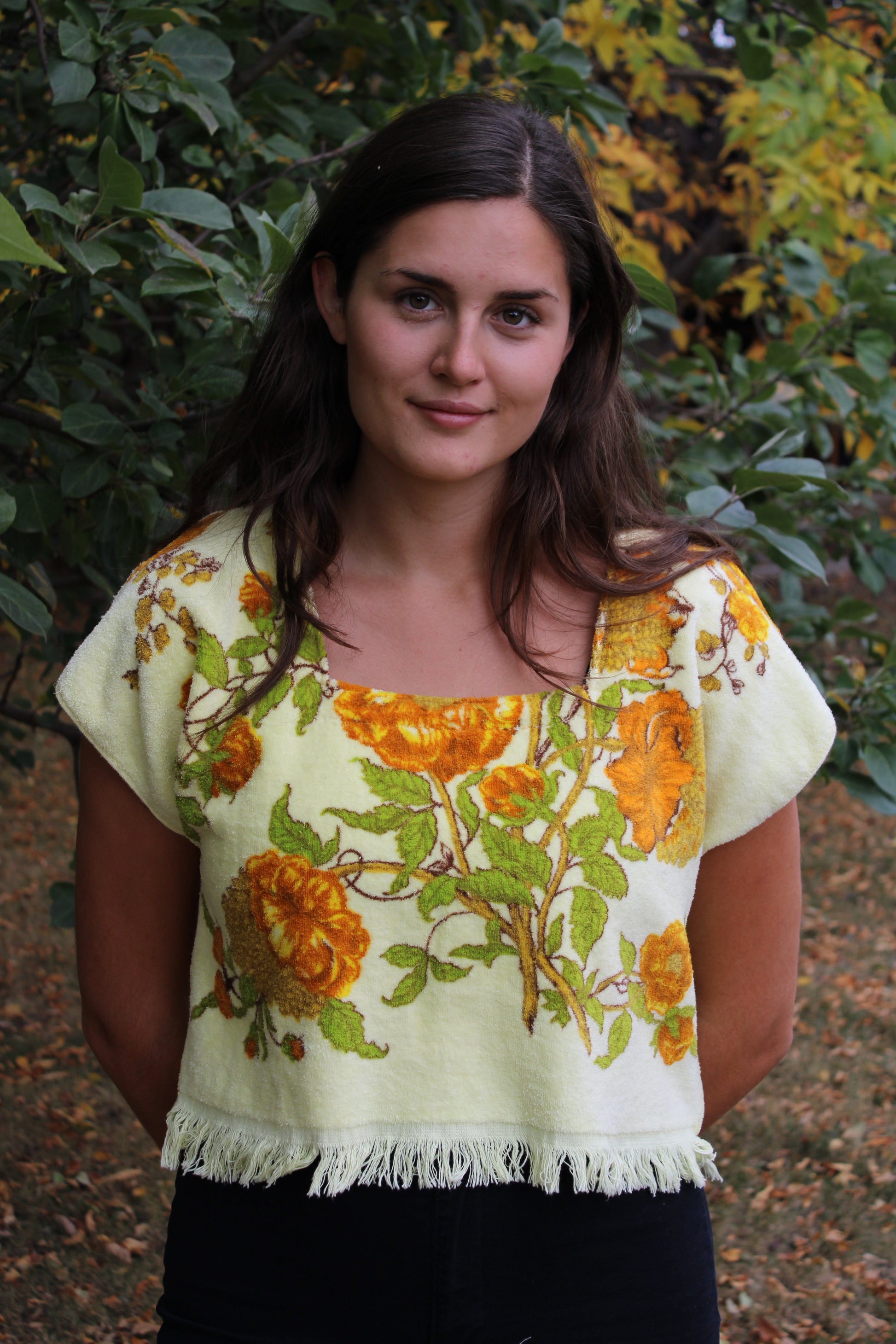 Square neck and boxy cropped blouse made from a vintage hand towel.